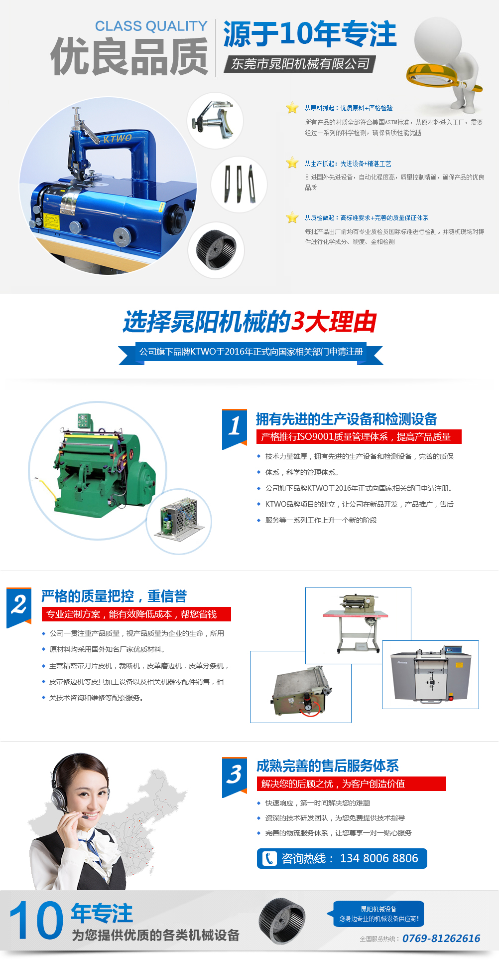 東莞市晁陽機械有限公司(簡稱晁陽皮具機械),是一家由2008年收購整合原臺灣臺北縣晁陽實業有限公司后重組而來的獨資公司。重組后注冊地位于廣東省東莞市。經營各類皮具機械,鞋業機械。主營精密帶刀片皮機,裁斷機,皮革磨邊機,皮革分條機,皮帶修邊機等皮具加工設備以及相關機器零配件銷售,相關技術咨詢和維修等配套服務。